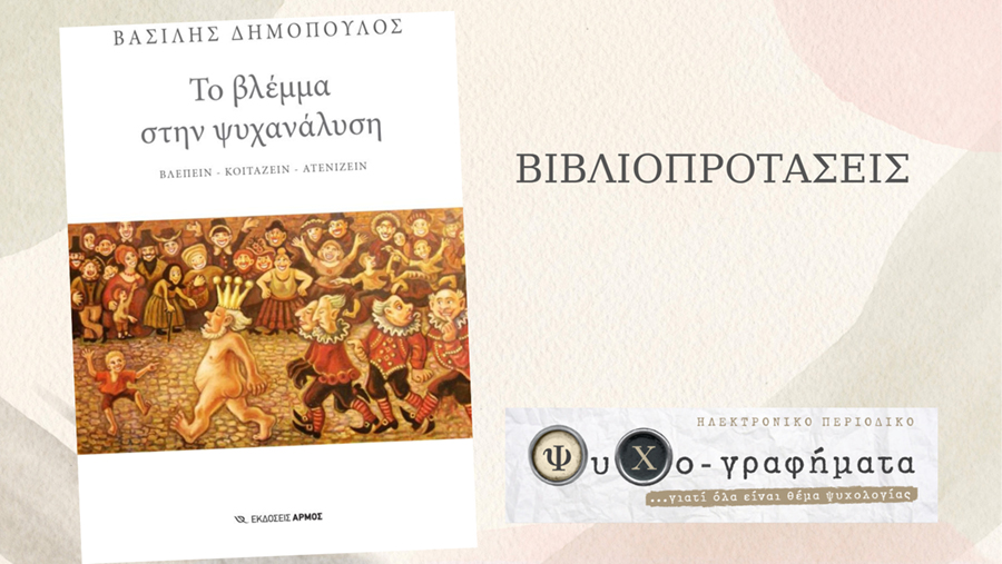 Το βλέμμα στην ψυχανάλυση …ΌΤΑΝ «ΚΟΙΤΆΖΟΥΜΕ» ένα αντι-κείμενο (κείμενο απέναντί μου, αλλά και αντί εμού), το «βλέπουμε» με τα δύο μάτια και η μία «οπτική» συμπληρώνει, πλέκεται και συναλλάσσεται με την άλλη. Αυτή η εργασία στο αντιληπτικό πεδίο βρίσκει το ανάλογό της στα ψυχικά συστήματα μεταξύ συνειδητού – ασυνειδήτου. Αν το ένα σύστημα δεν συνεργάζεται με το άλλο, είναι σαν να έχουμε «μονόφθαλμη όραση». Ο αναλυτής διαθέτοντας –αν διαθέτει– «διόφθαλμη κατανόηση», θα κάνει ερμηνείες και κατασκευές, που βοηθούν τον αναλυόμενο να «βλέπει» «διόφθαλμα», στα δύο δηλαδή επίπεδα συνειδητού και ασυνειδήτου ταυτόχρονα.