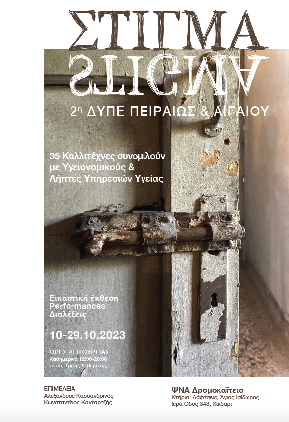 αρνητική του πρόσληψη είναι απόρροια κοινωνικών διεργασιών, στο φετινό συμπόσιο για την τέχνη και την υγεία, η 2η Υγειονομική Περιφέρεια Πειραιώς και Αιγαίου (2η Υ.Πε.) συνεργάζεται με διακεκριμένους εικαστικούς και οργανώνει στους εμβληματικούς χώρους του Ψυχιατρικού Νοσοκομείου Αττικής «Δρομοκαΐτειο» δράσεις για την τέχνη και την υγεία με θέμα το «Στίγμα/Stigma» σε επιμέλεια του Αλέξανδρου Κασσανδρινού και Κωνσταντίνου Κανταρτζή.