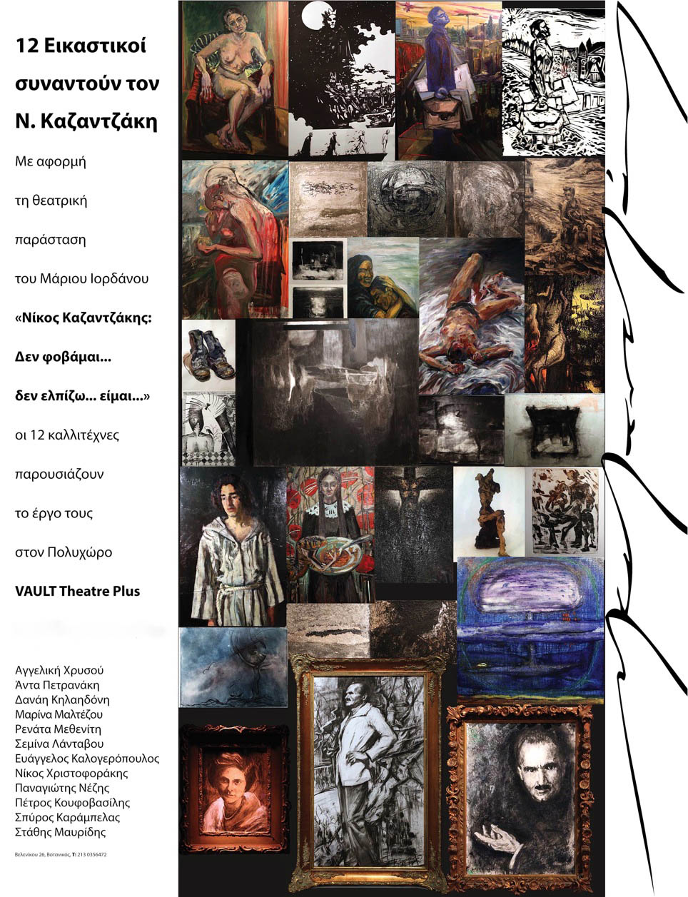 Η έκθεση τους στεγάζεται στον Πολυχώρο Vault και συναντάται με την παράσταση «Δε φοβάμαι. Δεν ελπίζω. Είμαι…», μια σκηνική σύνθεση από τα έργα του Νίκου Καζαντζάκη, σε σκηνοθεσία Μάριου Ιορδάνου.