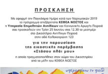 Με αφορμή την Παγκόσμια Ημέρα κατά των Ναρκωτικών 2019, το πρόγραμμα απεξάρτησης KEΘEA NOΣTOΣ και η Υπηρεσία Επιμελητών Ανηλίκων και Κοινωνικής Αρωγής Πειραιά σας προσκαλούν την...