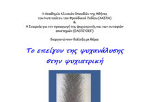 H Ακαδημία Κλινικών Σπουδών της Αθήνας του Ινστιτούτου του Φροϋδικού Πεδίου (Α.Κ.ΣΠ.Α.) & Η Εταιρεία για την Προαγωγή της Ψυχιατρικής και των Συναφών Επιστημών (ΕΛΕΠΣΥΣΕΠ) διοργανώνουν την Παρασκευή 2...
