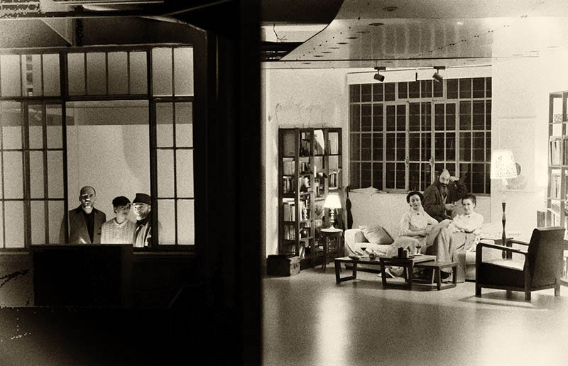 Μέσα, τα πρόσωπα ζουν, κινούνται, δρουν στο ρυθμό μιας αδιατάραχτης καθημερινότητας. Είναι ευτυχισμένα. Έξω, τα σκηνικά υποκείμενα τους παρατηρούν ως επικείμενοι μαντατοφόροι του θανάτου, άγγελοι τρομερών ειδήσεων. Βρίσκονται στη δύσκολη θέση να πρέπει να εισβάλουν σε αυτήν την εικόνα ευτυχίας και να τη γκρεμίσουν με την είδηση του θανάτου. Οι θεατές βρίσκονται σε εξίσου δύσκολη θέση, συνένοχοι στη γνώση του ανείπωτου.