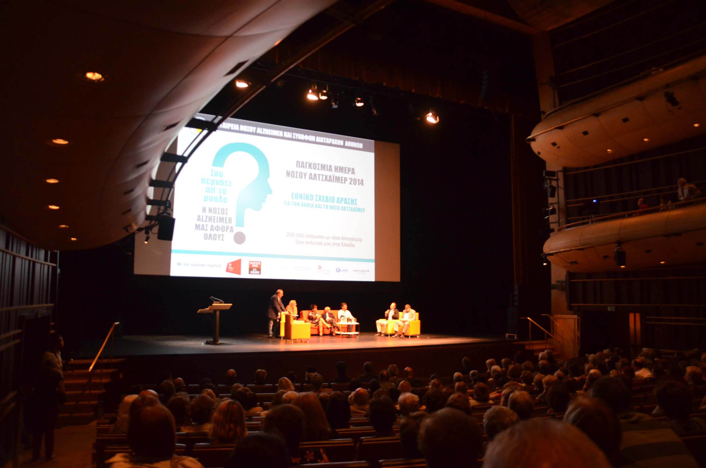 Στην κατάμεστη αίθουσα της Κεντρικής Σκηνής της Στέγης Γραμμάτων και Τεχνών του Ιδρύματος Ωνάση πραγματοποιήθηκε με εξαιρετική επιτυχία την Παρασκευή, 26 Σεπτεμβρίου, η επίσημη παρουσίαση του Εθνικού Σχεδίου Δράσης για την Άνοια και τη Νόσο Αλτσχάιμερ, παρουσία της Υφυπουργού Υγείας, κας Κατερίνας Παπακώστα, εκπροσώπων πολιτικών κομμάτων, της Τοπικής Αυτοδιοίκησης και της Εκκλησίας, ασθενών με άνοια και των φροντιστών τους.