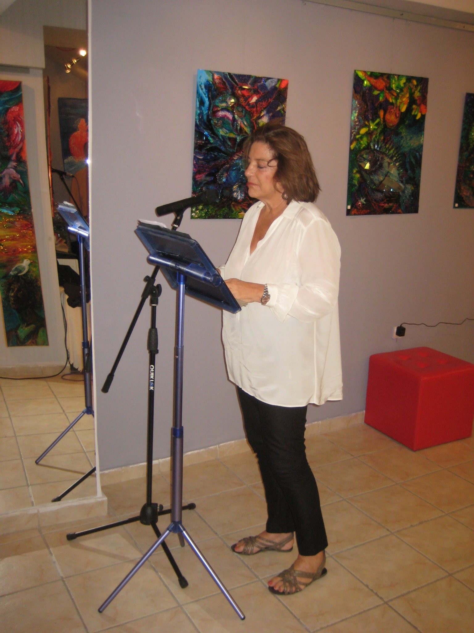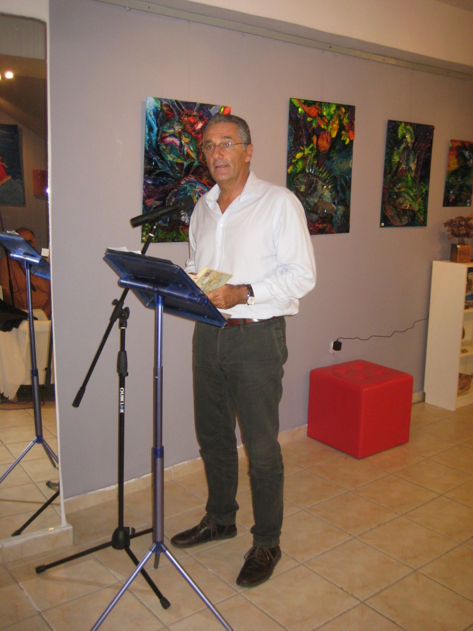Ο κ. Στυλιανίδης Στέλιος, Αναπληρωτής Καθηγητής Κοινωνικής Ψυχιατρικής στο Πάντειο Πανεπιστήμιο και Επιστημονικός Διευθυντής της Ε.Π.Α.Ψ.Υ., σχολίασε την έκθεση της δουλειάς μας σε καιρούς συνολικής κρίσης, ταυτίζοντάς την με την έκθεση του εαυτού μας σε θέματα και ερωτήματα όπως κρίση και δημιουργικότητα, κρίση και τέχνη. Είπε χαρακτηριστικά: «Στο ευρύ πεδίο της δημιουργικότητας, αναπτύσσεται η δυνατότητα μετασχηματισμού, όχι της πραγματικότητας, αλλά του τρόπου με τον οποίο την αντιλαμβανόμαστε. Και είναι ένα στοίχημα για όλους μας να προσφέρουμε στη δημιουργικότητα και να εμπλουτίσουμε την εξωτερική, αλλά και εσωτερική πραγματικότητα. Στο συλλογικό χώρο της δημιουργικότητας και της τέχνης, το συλλογικό και προσωπικό μας “είναι”, οξύνει τις αισθήσεις, εμπλουτίζει τη συναισθηματική μας ζωή και εμπειρία και δημιουργεί έναν άυλο ψυχο-νοητικό και συλλογικό πλούτο. Μιλάμε για μια δημιουργικότητα που μπορεί να εκλύεται, να παράγεται από αυτό που ο καθένας μας ζει σαν προσωπική οδύνη μέσα του. Μια δημιουργικότητα, που αποτελεί διαδικασία συν-κατασκευής ενός νοήματος μεταξύ πομπού και αποδέκτη του μηνύματος, μεταξύ καλλιτέχνη και ενεργού θεατή».