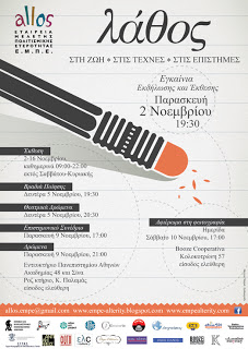 Το Λάθος στην Τέχνη, στην Φιλοσοφία, στις Επιστήμες. Το Λάθος στη ζωή, στις σχέσεις, στις επιλογές, στον απολογισμό. Μια επισκόπηση του Λάθους ως νοήματος της ανθρώπινης ύπαρξης.