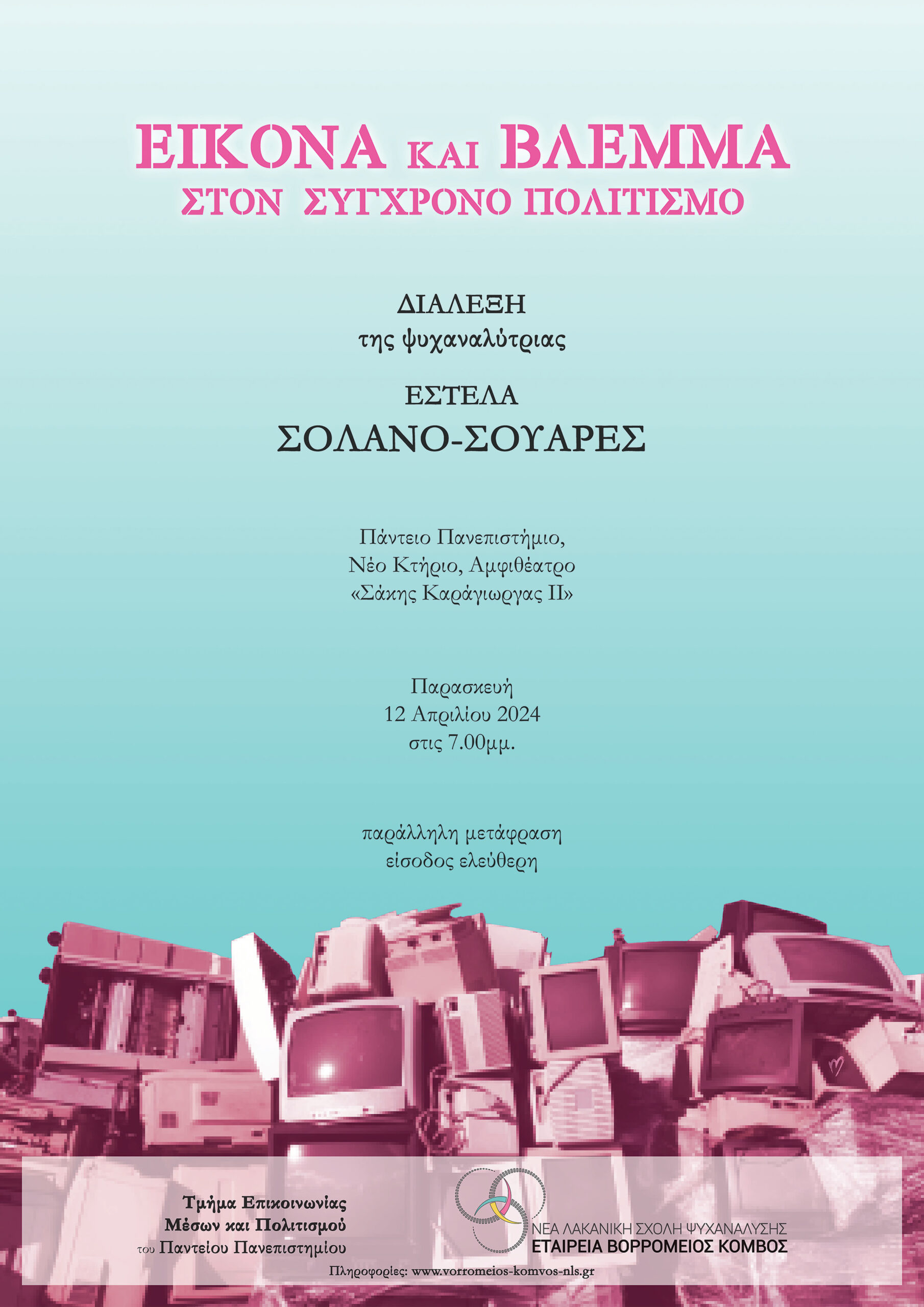 Η Εταιρεία Βορρόμειος Κόμβος της Νέας Λακανικής Σχολής στην Ελλάδα διοργανώνει σε συνεργασία με το Τμήμα Επικοινωνίας, Μέσων και Πολιτισμού του Παντείου Πανεπιστημίου