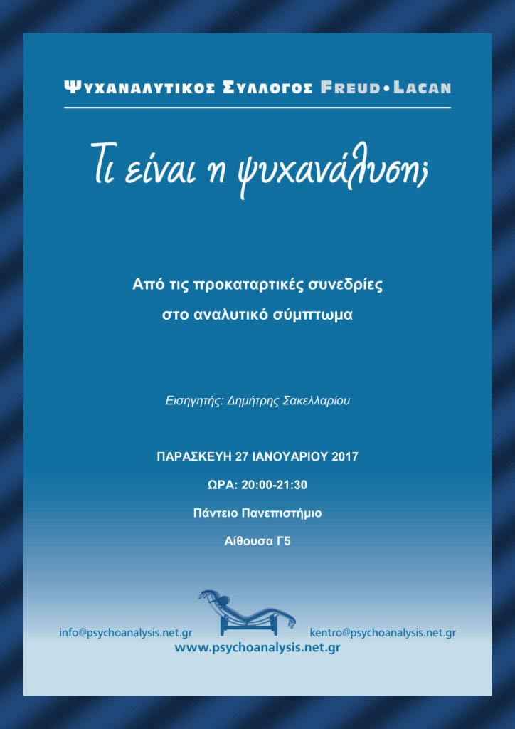 Τι είναι η ψυχανάλυση; Από τις προκαταρτικές συνεδρίες στο αναλυτικό σύμπτωμα 25 Ιανουαρίου 2017 Χρόνος ανάγνωσης < 1 ΄